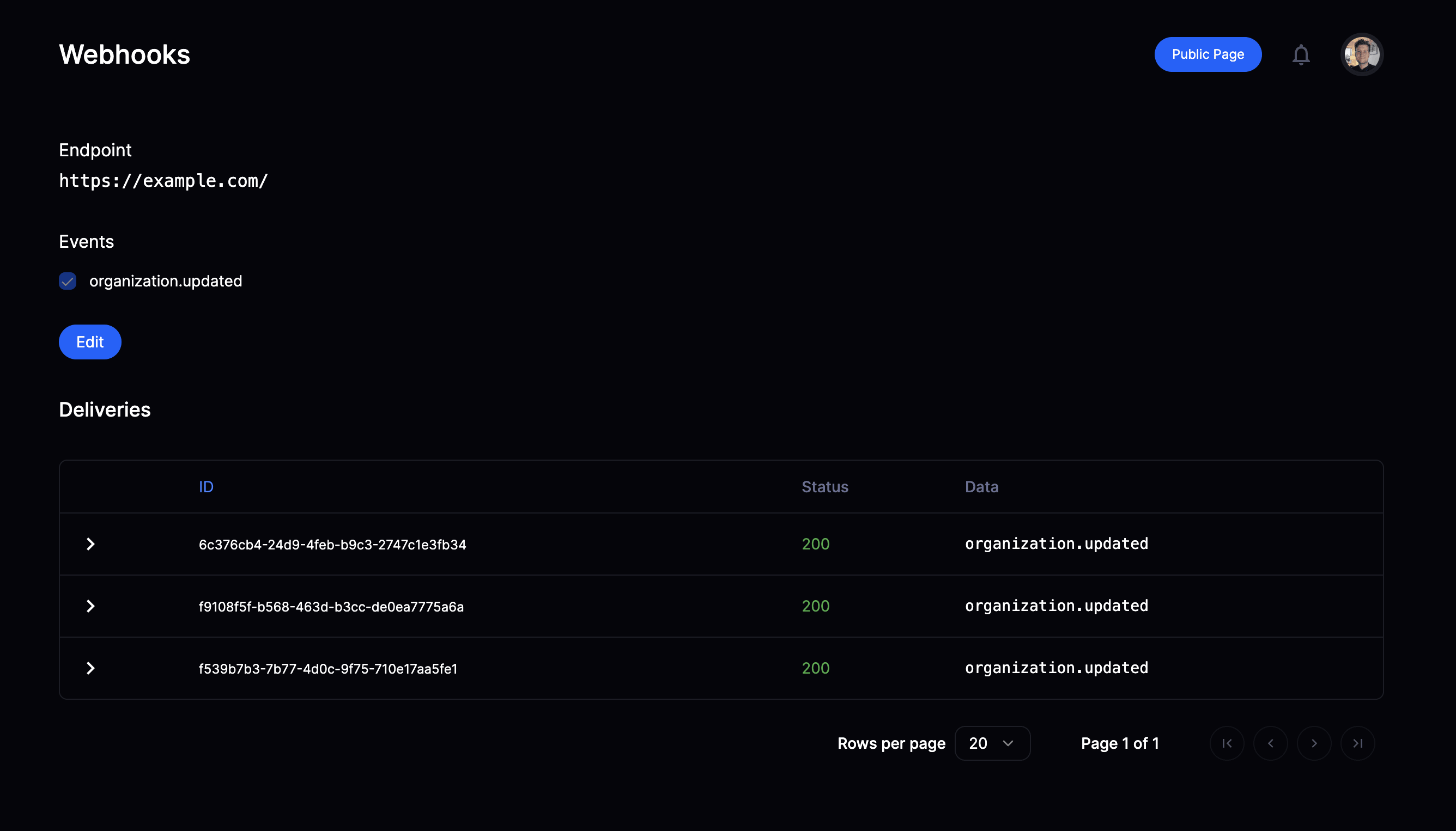 We follow the Standard Webhooks standard which offers many libraries across languages to easily validate signatures. Or you can follow their specification in case you want to roll your own.Note: Secret needs to be base64 encodedOne common gotcha with the specification is that the webhook secret is expected to be